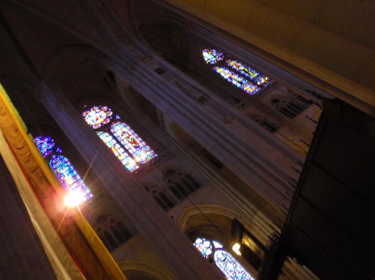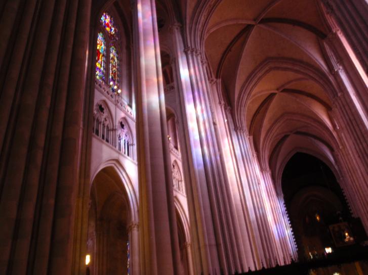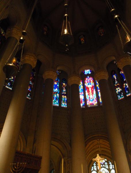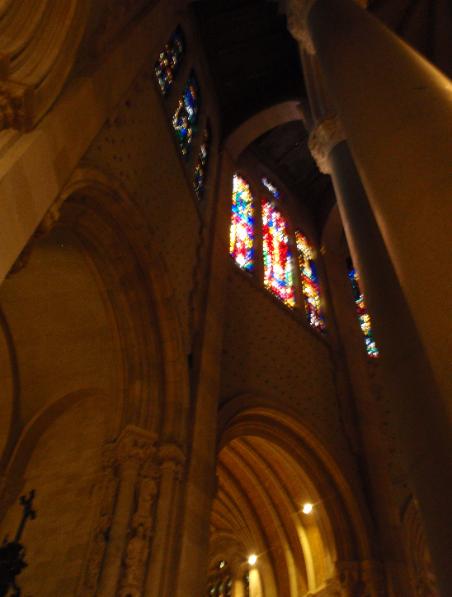 | Just as we were about to leave, the sun came out and filled the church with color through the stained glass windows. |