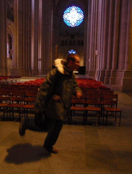 | Adam running in church. |
