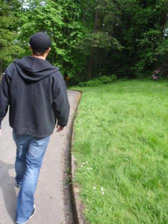 | The trek downhill to the Japanese Gardens. |